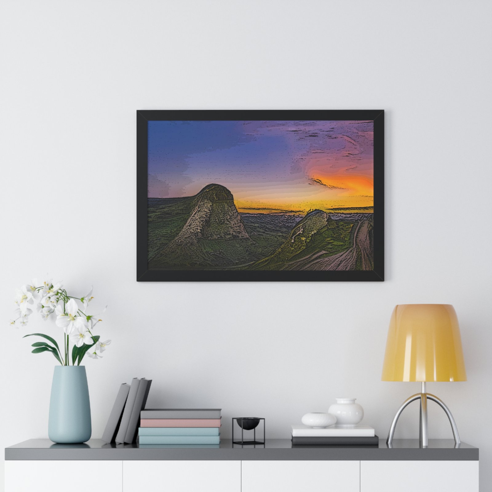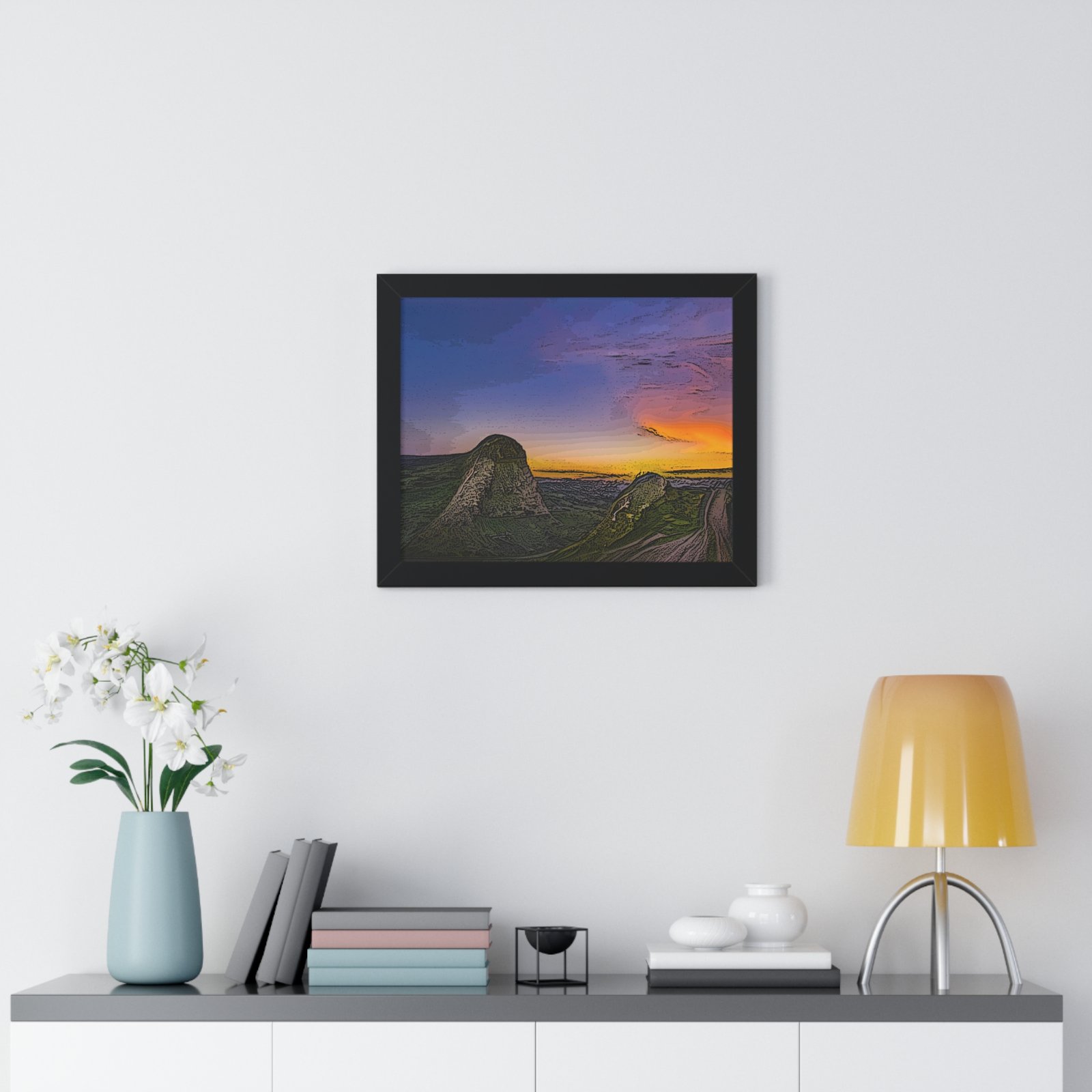 Available in four sizes and two framing colors, these archive-worthy ink and photo paper enrich any applied design. A premium hardware inclusion on the backside guarantees clean hanging; making sure that the premium horizontal poster’s design comes across as it should.